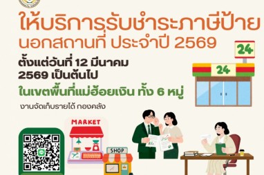 ออกให้บริการ รับชำระภาษีป้ายนอกสถานที่ ประจำปีงบประมาณ พ.ศ. 2569 เพื่ออำนวยความสะดวกให้แก่ประชาชนในการชำระภาษี