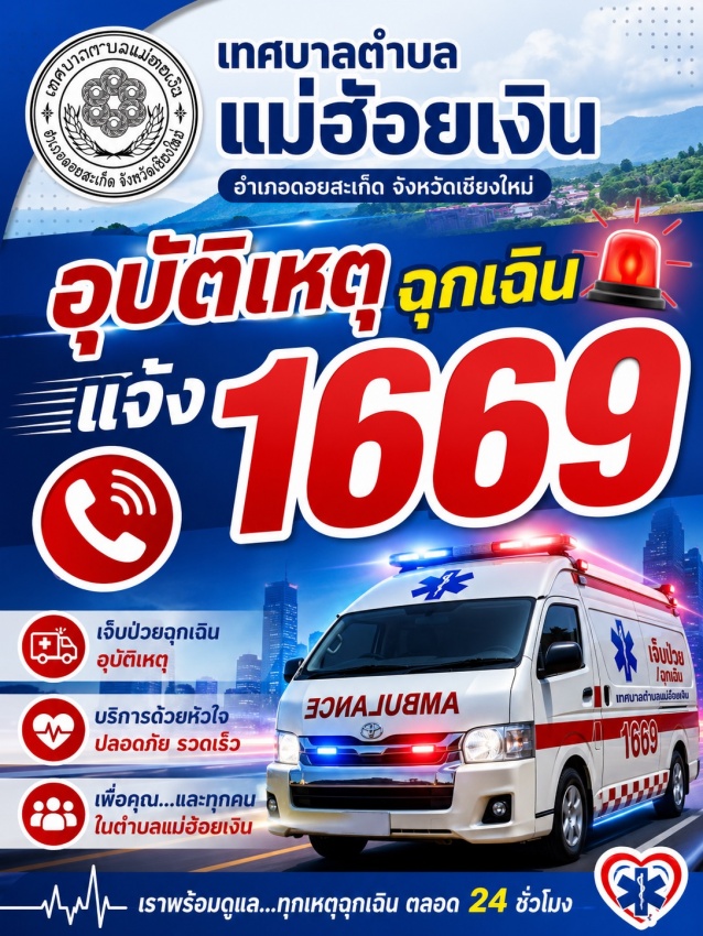 เทศบาลตำบลแม่ฮ้อยเงิน ขอประชาสัมพันธ์การให้บริการ หน่วยปฏิบัติการการแพทย์ฉุกเฉิน (กู้ชีพ)