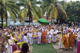ถวายการต้อนรับพระบรมราชโองการ สัญญาบัตร,พัดยศ,ผ้าไตรพระราชทาน แต่งตั้งพระครูถาวรรัตนรังษี ณ.วัดถาวรรังษี (ม่วงโตน)