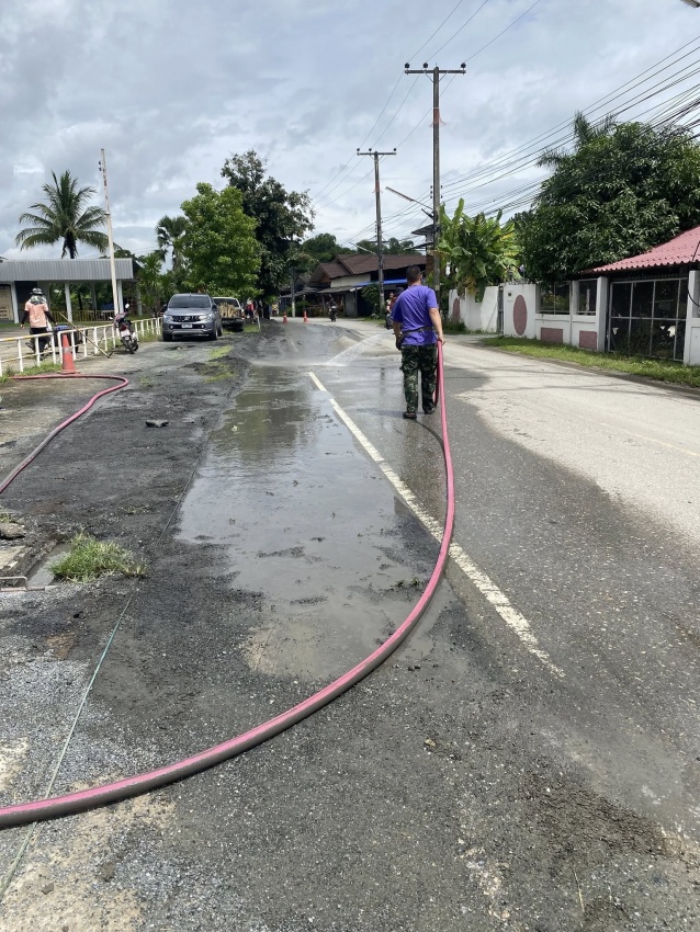 ลงพื้นที่แก้ไขปัญหาน้ำท่วมขังหน้าตลาดแม่ฮ้อยเงิน การปฎิบัติงานเรียบร้อย