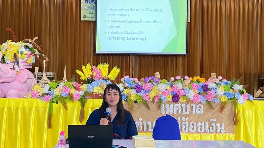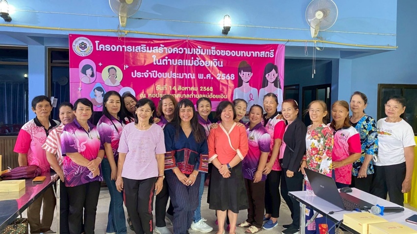 งานพัฒนาชุมชน สำนักปลัดเทศบาลตำบลแม่ฮ้อยเงิน โดย น.ส.สุคนธา พงษศิริ หัวหน้าสำนักปลัด จัดโครงการอบรม บทบาทสตรี ณ.อาคารหอประชุมเทศบาล