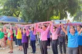 1.กิจกรรมกายบริหาร โดยการยืดเส้นยืดสายเพื่อผ่อนคลายกล้ามเนื้อ ด้วยผ้าขาวม้า การฟื้นฟูสมรรถภาพร่างกายและจิตใจ