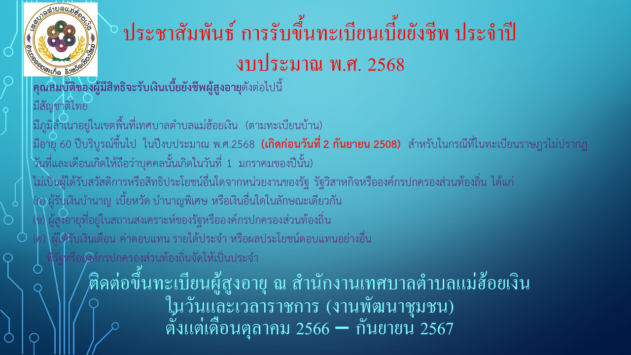 การรับขึ้นทะเบียนเบี้ยยังชีพ ประจำปีงบประมาณ พ.ศ. 2568