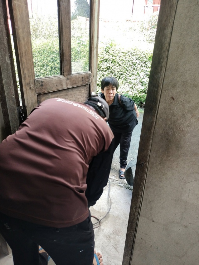นาย มิตร สลิดชุ่ม รองนายกเทศมนตรีตำบลแม่ฮ้อยเงิน ออกตรวจดูโครงการซ่อมบ้านคนพิการหลังที่ ๑ น.ส.ม่วย พ่วงไม้มิ่ง คนพิการหมู่ ๑ บ้านแม่ฮ้อยเงินเหนือ (ประสาน งบ อบจ.เชียงใหม่)