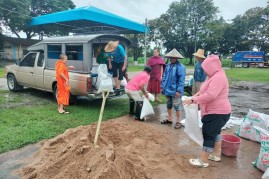 มอบกระสอบทราย ให้ประชาชนทั้ง ๖ หมู่บ้าน