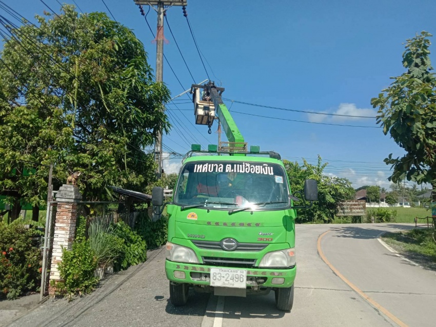 และซ่อมแซมไฟกิ่งในพื้นที่ตำบลแม่ฮ้อยเงิน ตามที่นายกเทศมนตรีสั่งการ