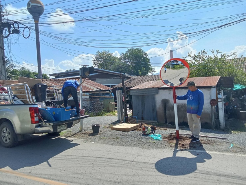 ดำเนินการติดตั้งกระจกมุมโค้งจุดเสี่ยง และซ่อมแซมไฟกิ่งในพื้นที่ตำบลแม่ฮ้อยเงิน