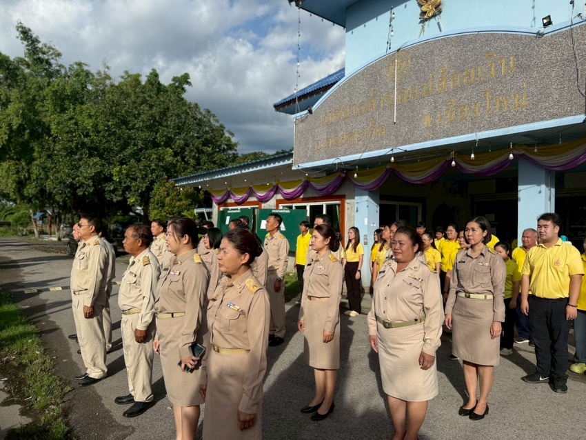 เทศบาลตำบลแม่ฮ้อยเงิน ดอยสะเก็ด เชียงใหม่ นำโดย นาย วิทยา ตาจันทร์ดี นายกเทศมนตรีตำบลแม่ฮ้อยเงิน นำสมาชิกสภาเทศบาล หัวหน้าส่วนราชการ เจ้าหน้าที่พนักงาน เข้าแถว เคารพธงชาติ เนื่องในวันธงชาติไทย ๒๙ กันยายน ๒๕๖๘ ณ. สำนักงานเทศบาลตำบลแม่ฮ้อยเงิน